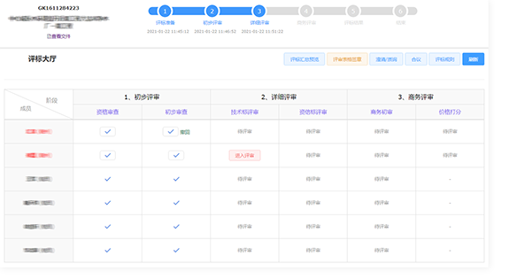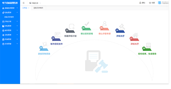 招標、投標、評標各環節係統引導、逐步推進,幫助用戶直觀了解相關進程