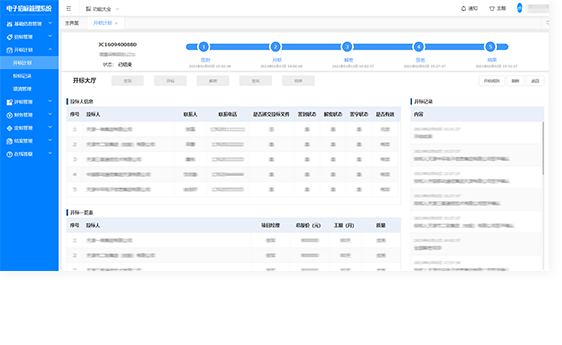 包含招標、投標、開標、評標、定標管理等,實現在線全流程管理操作